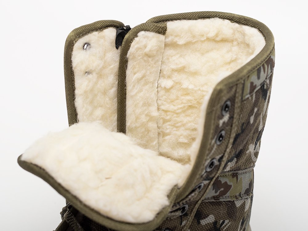 молнию. Внутри них находится утепление в виде меха. Высокая подошва камуфляжных ботинок сделана
