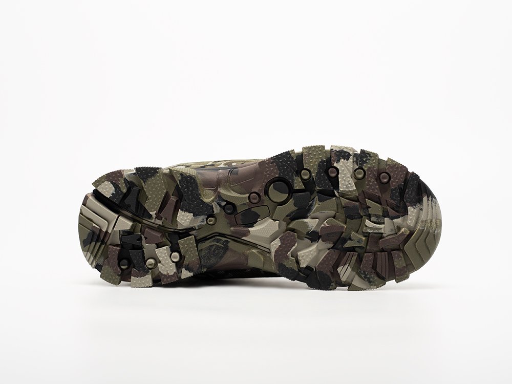 Верхняя часть зимней обуви сделана из текстиля с замшевыми вставками. Модель получила камуфляжную